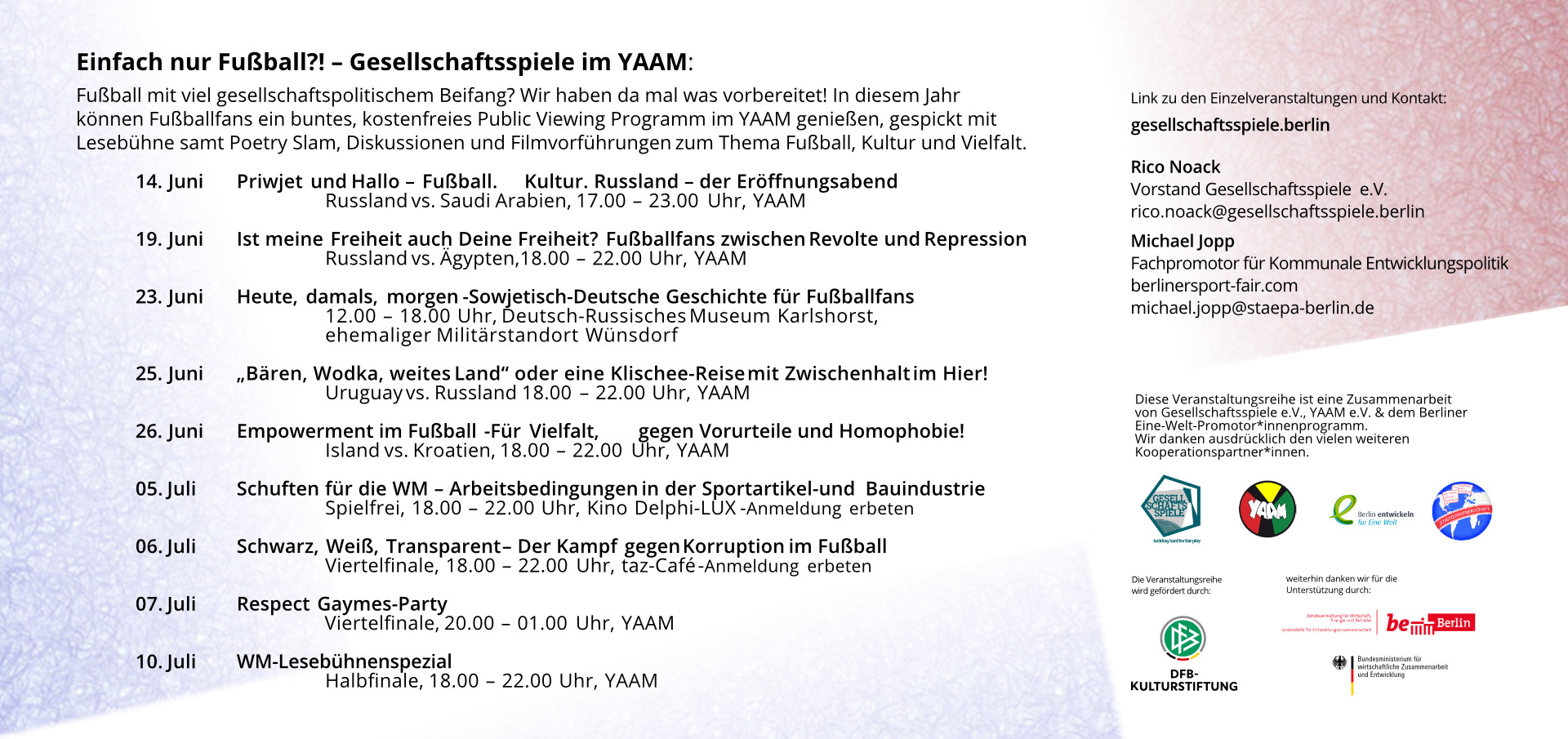 Ein WM-Kulturprogramm rund um die Themen Fußball, Vielfalt und Kultur (YAAM, Berlin)