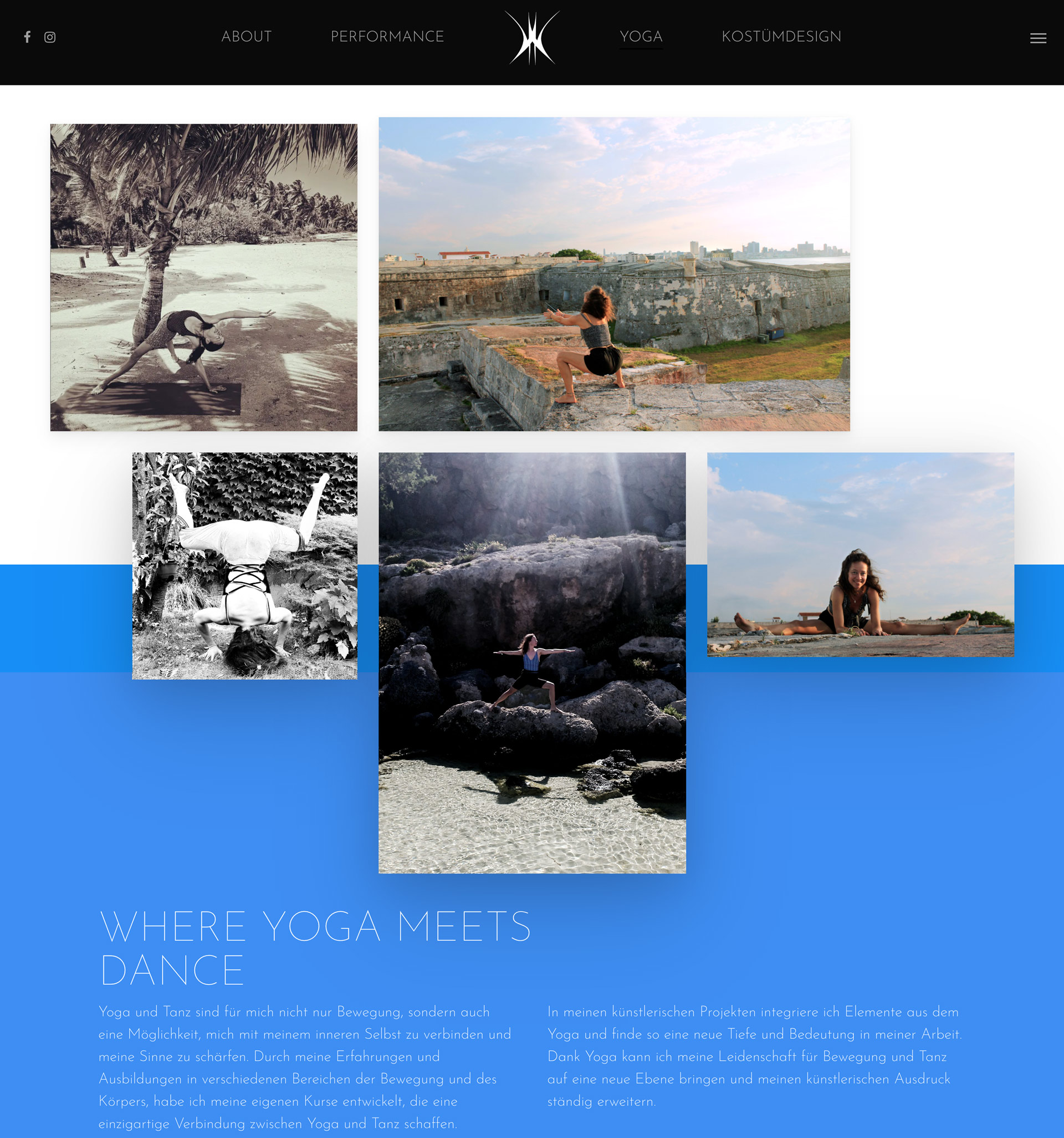 Darstellung meiner Tätigkeit als Yogalehrerin durch ein strukturiertes Layout und eine optimale Anordnug von Bild und Text sowie den gezielten Einsatz von animierten Elementen